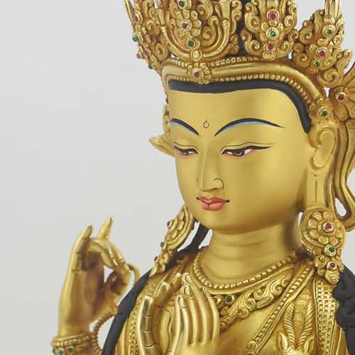One of our gold gilded Nepali statues will bring you blessings and infinite inspiration. View the lifelike qualities of the Buddhist deities displayed in front of you. The statues look best in person. A beautiful handmade statue will improve your life and the lives of those around you.